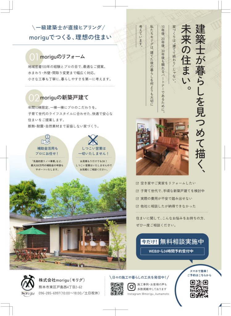 🏠 熊本で新築・リフォームなら一級建築士が直接対応する morigu(モリグ)
