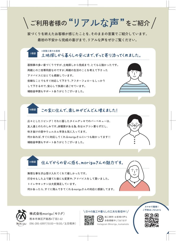 moriguで家づくりをされたお客様からは、